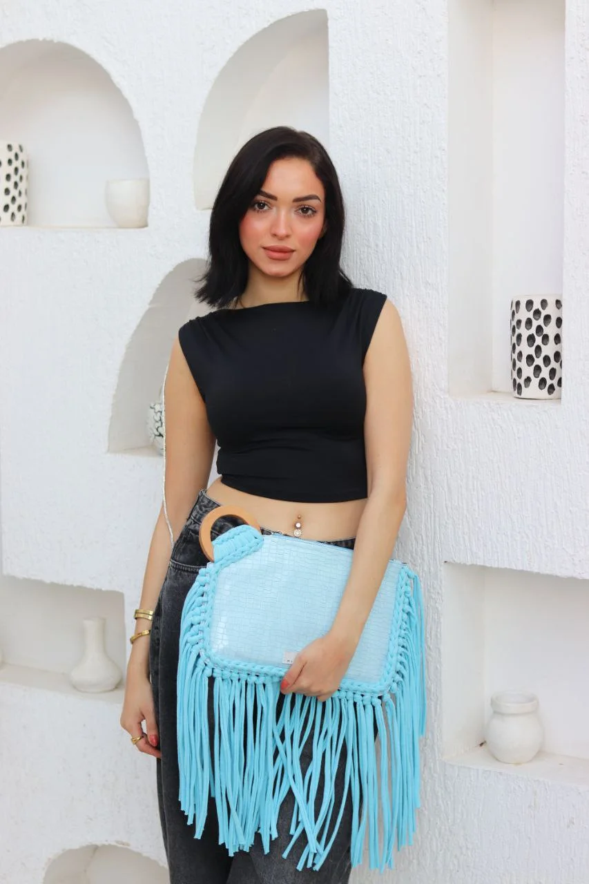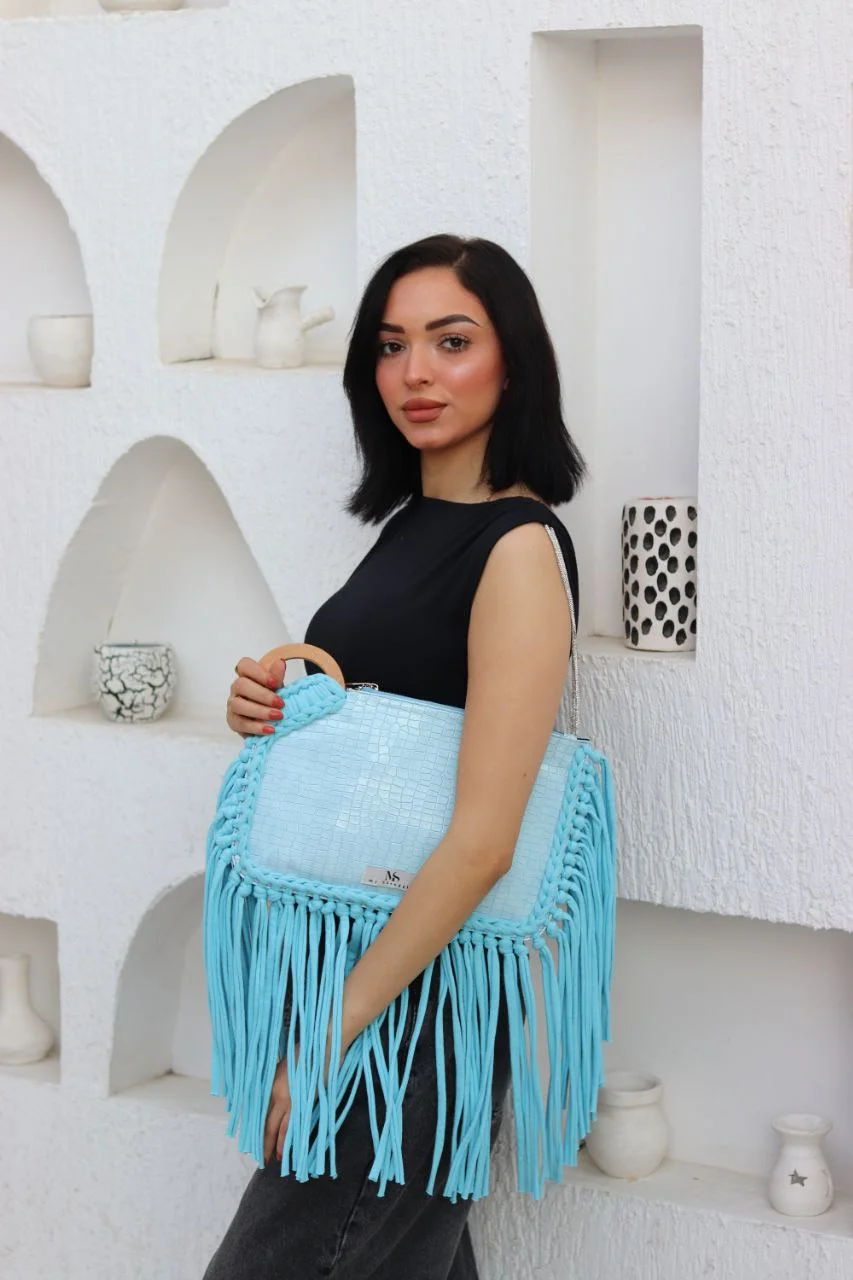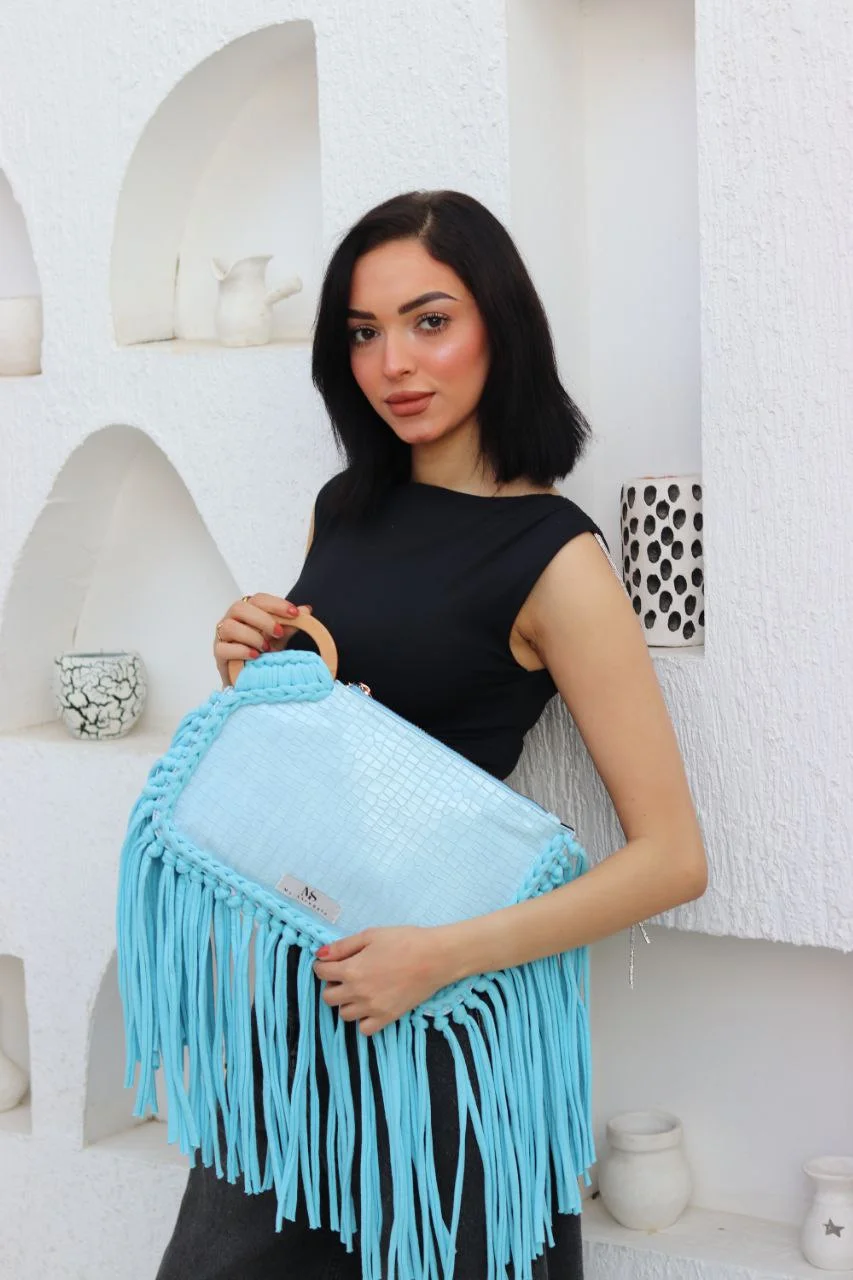 Ignite your style with "The Aqua Aura" Premium Embossed Fringe Clutch, a captivating creation from My Struggle designed for the bold and fashion-forward woman.