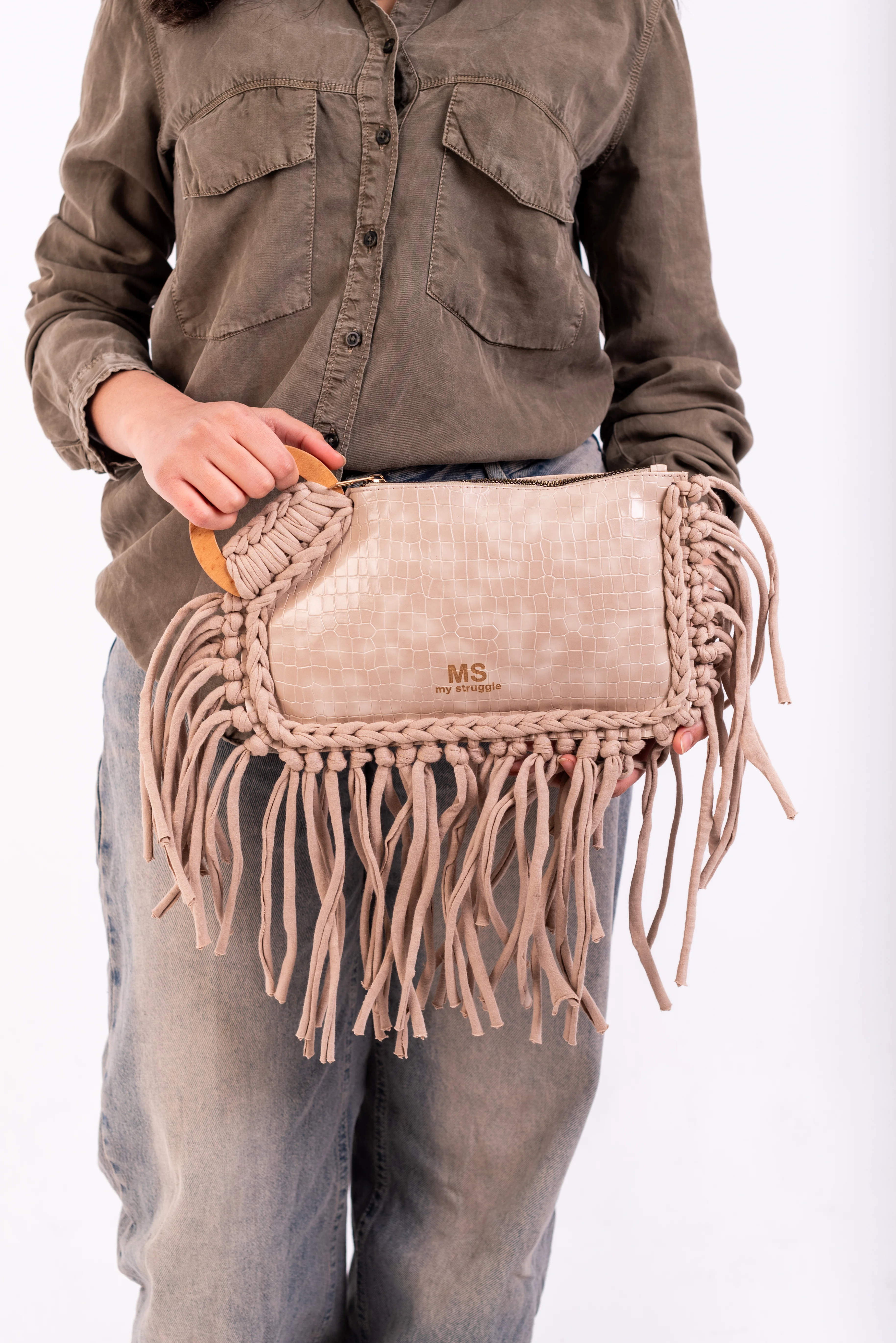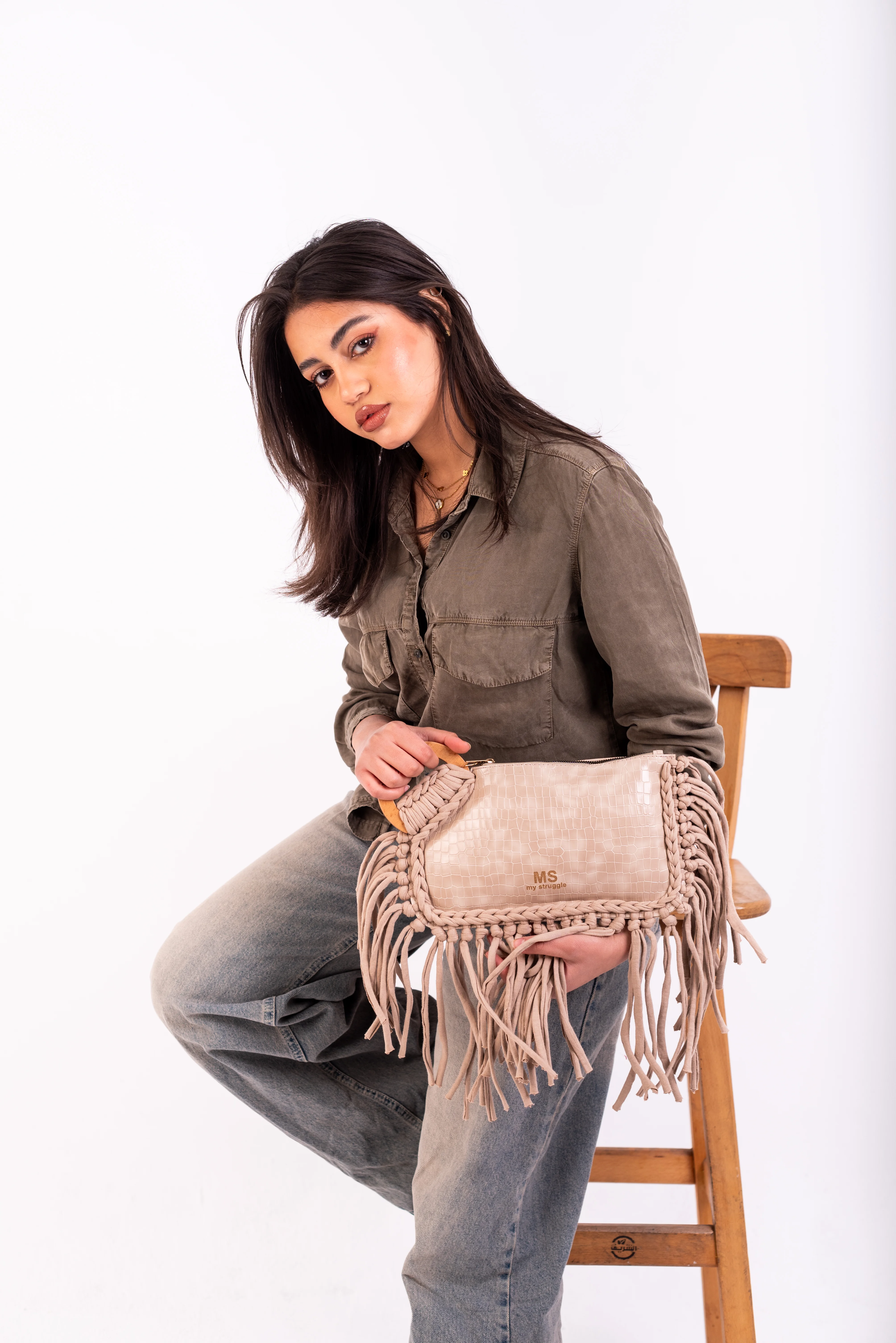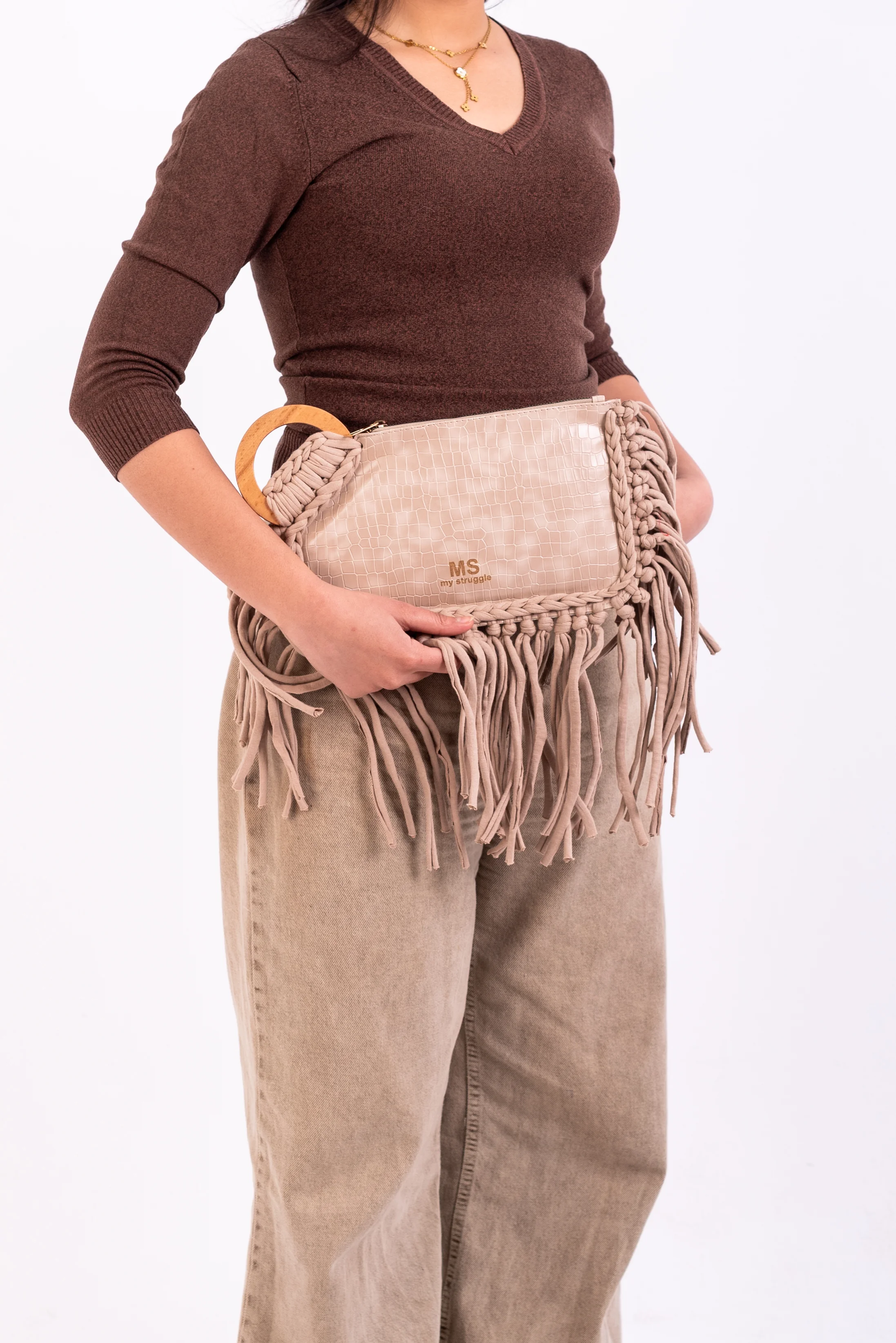 Shop the My Struggle Beige Crocodile Embossed Leather Clutch today and embrace pure elegance that truly stands out.