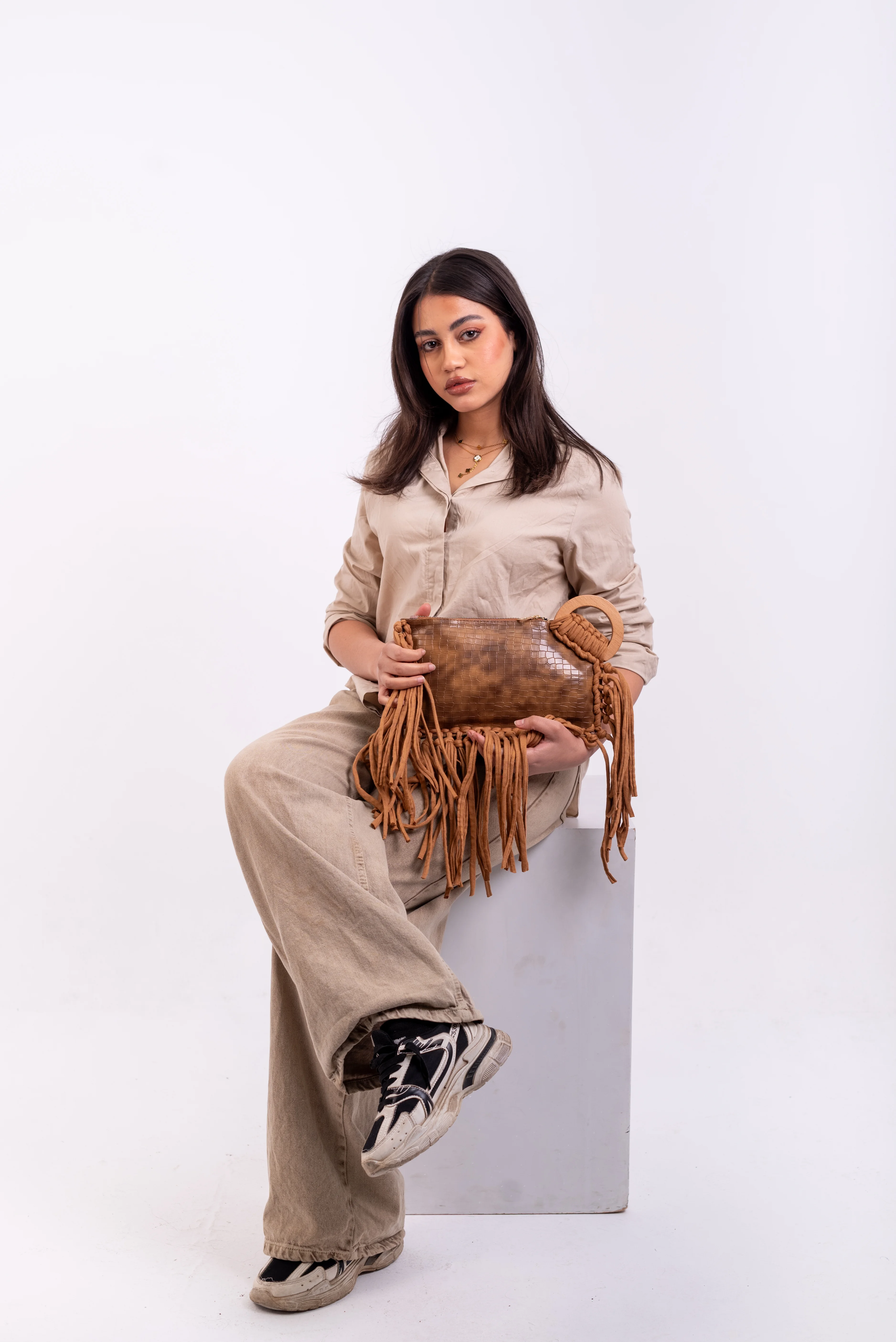 This clutch is designed for the discerning woman who appreciates unique, high-quality accessories that offer both style and versatility.