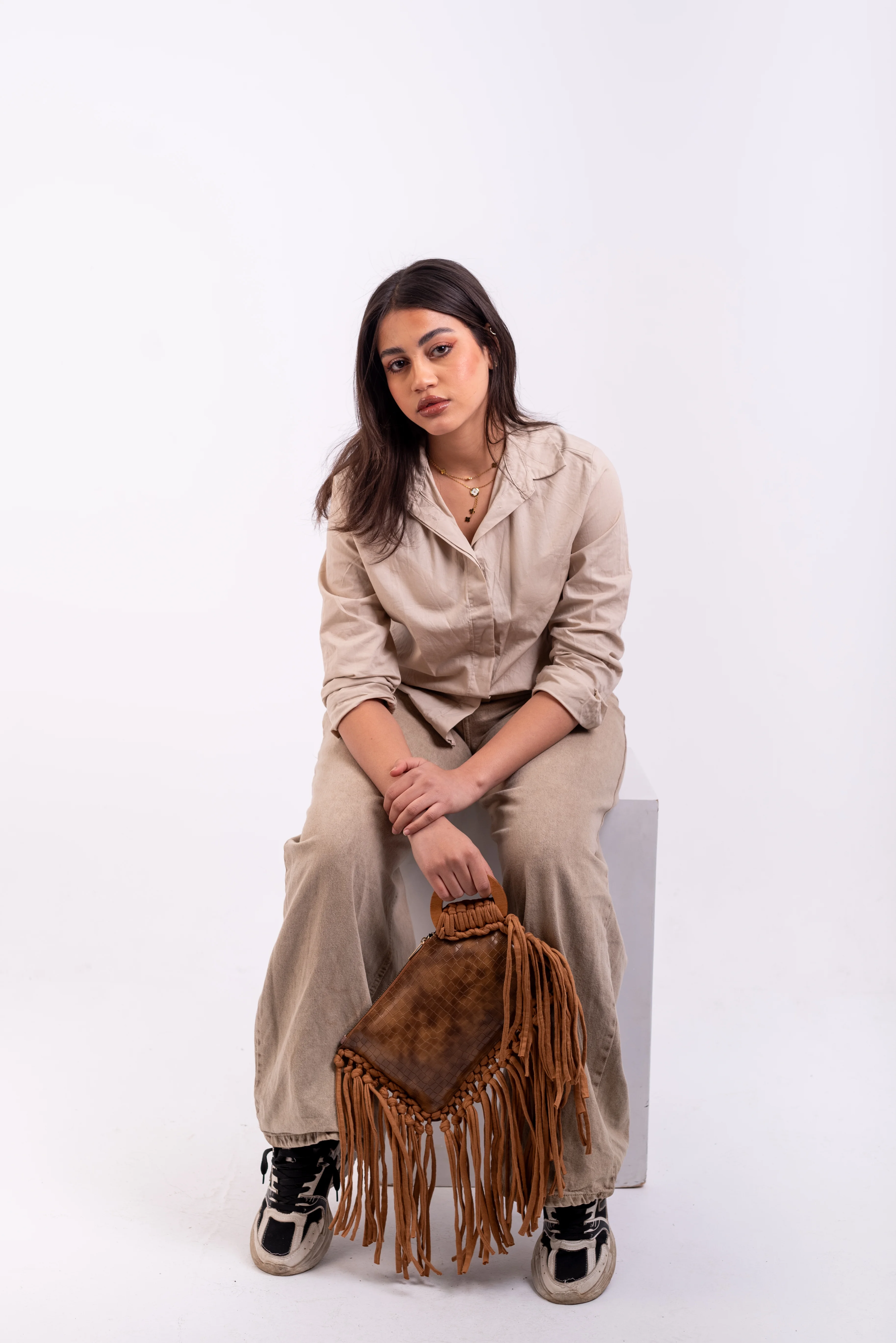 Matching Brown Fringe & Crochet Detailing.