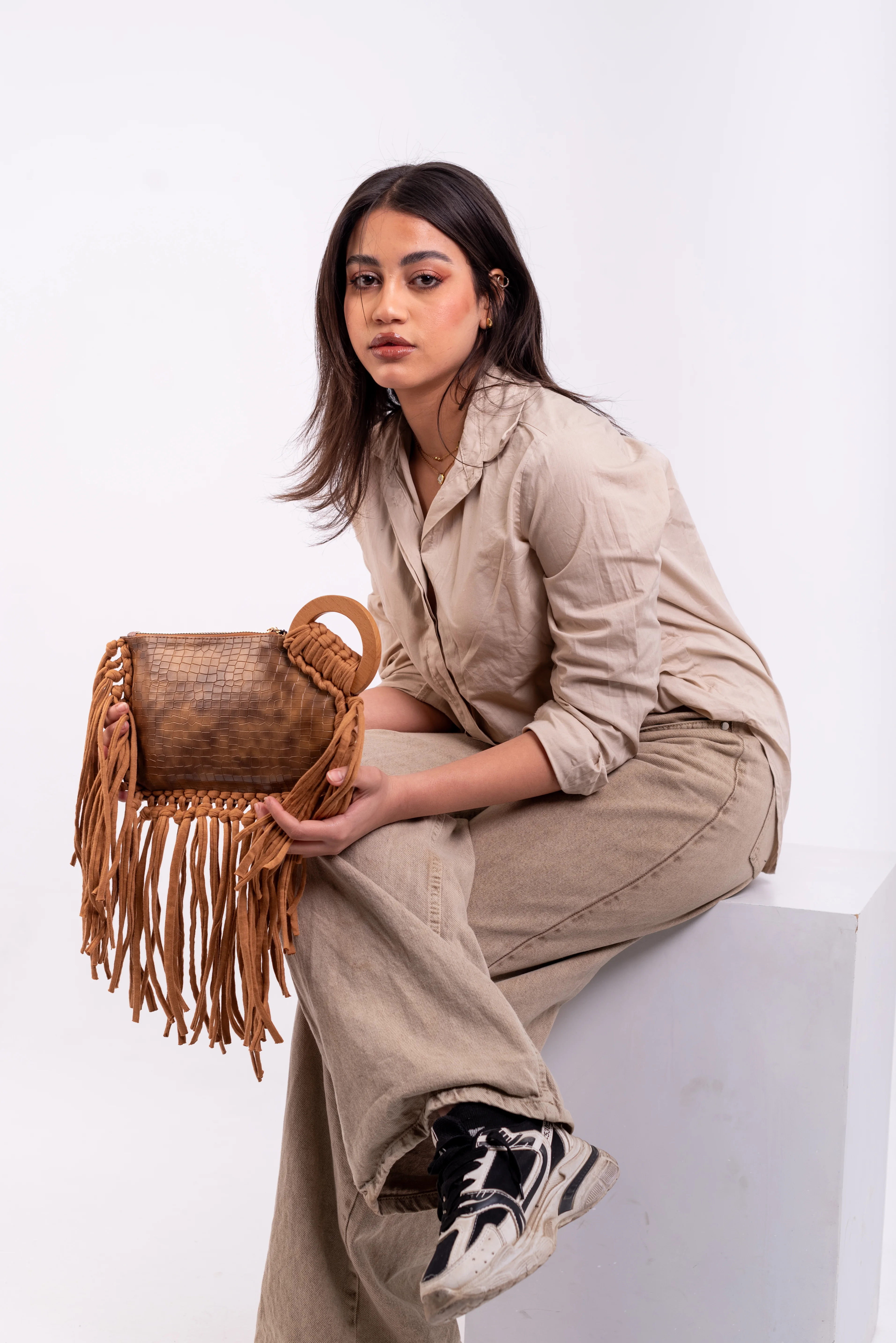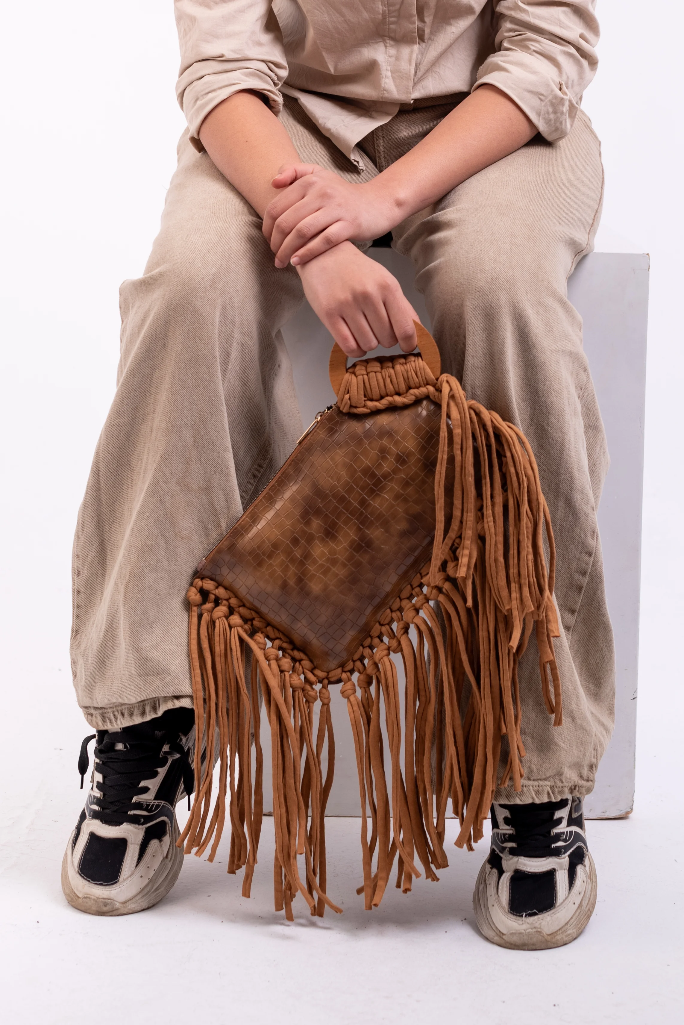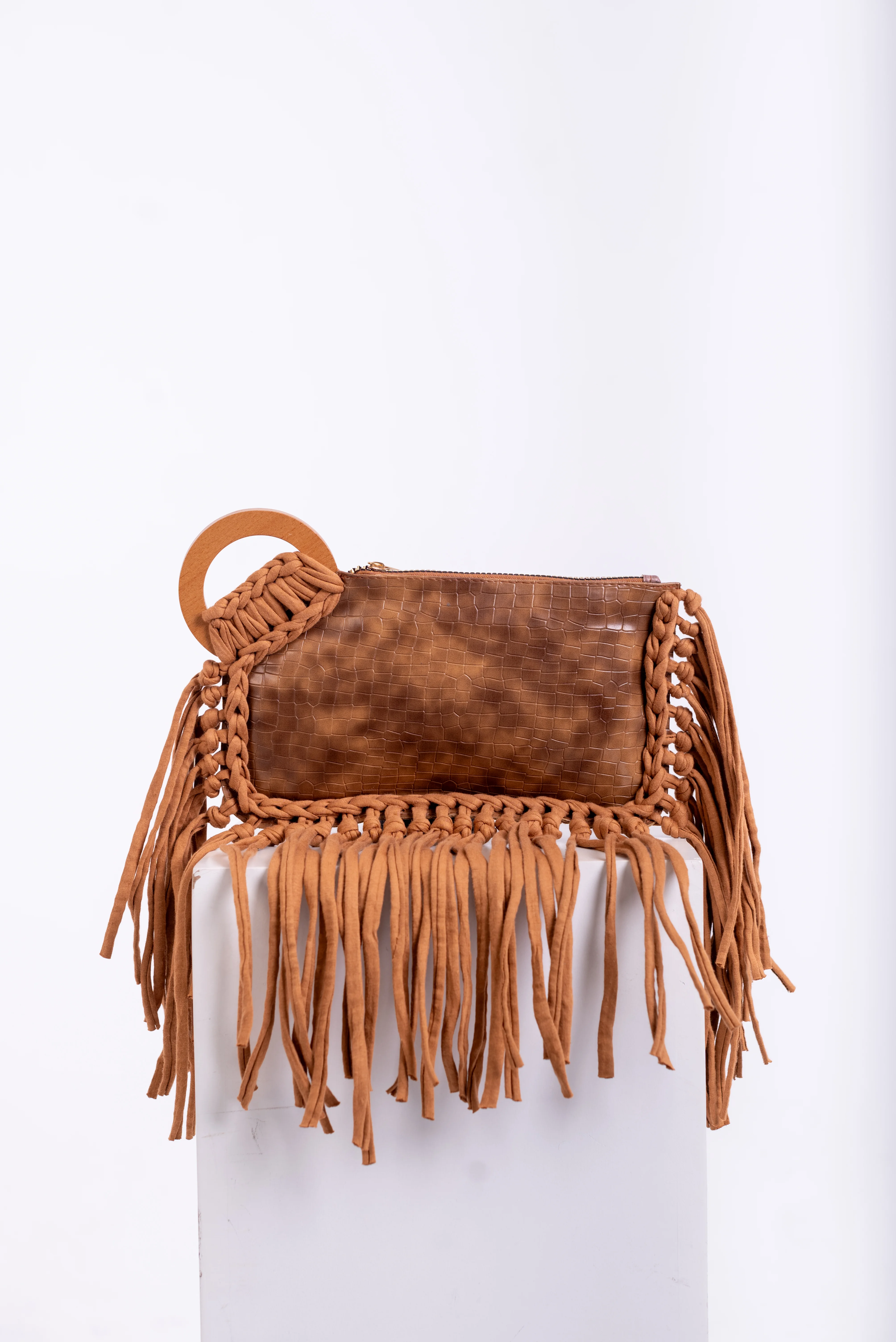 My Struggle Brown Croc-Embossed Leather Fringe Clutch.