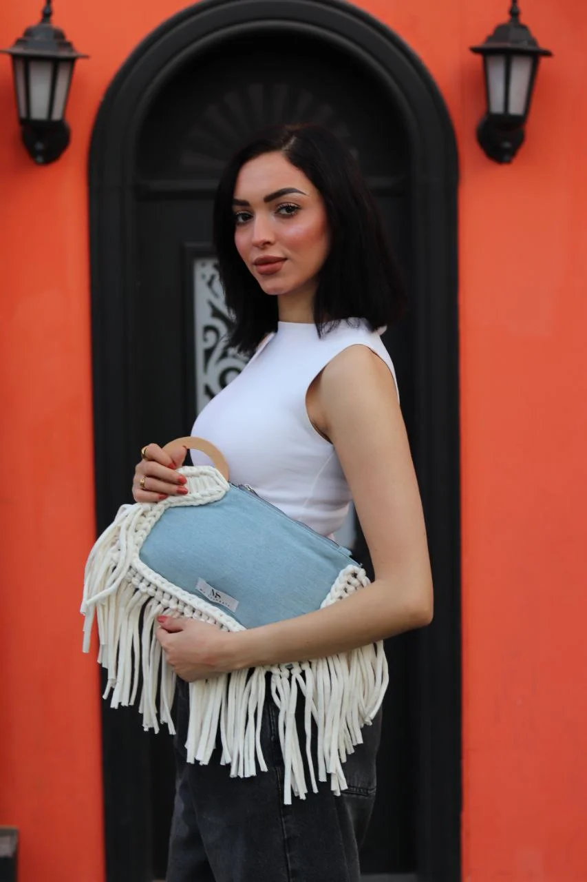 Premium Quality Materials: Made with a thoughtful combination of durable denim and high-quality macrame cords, this clutch is designed for both aesthetic appeal and lasting use.