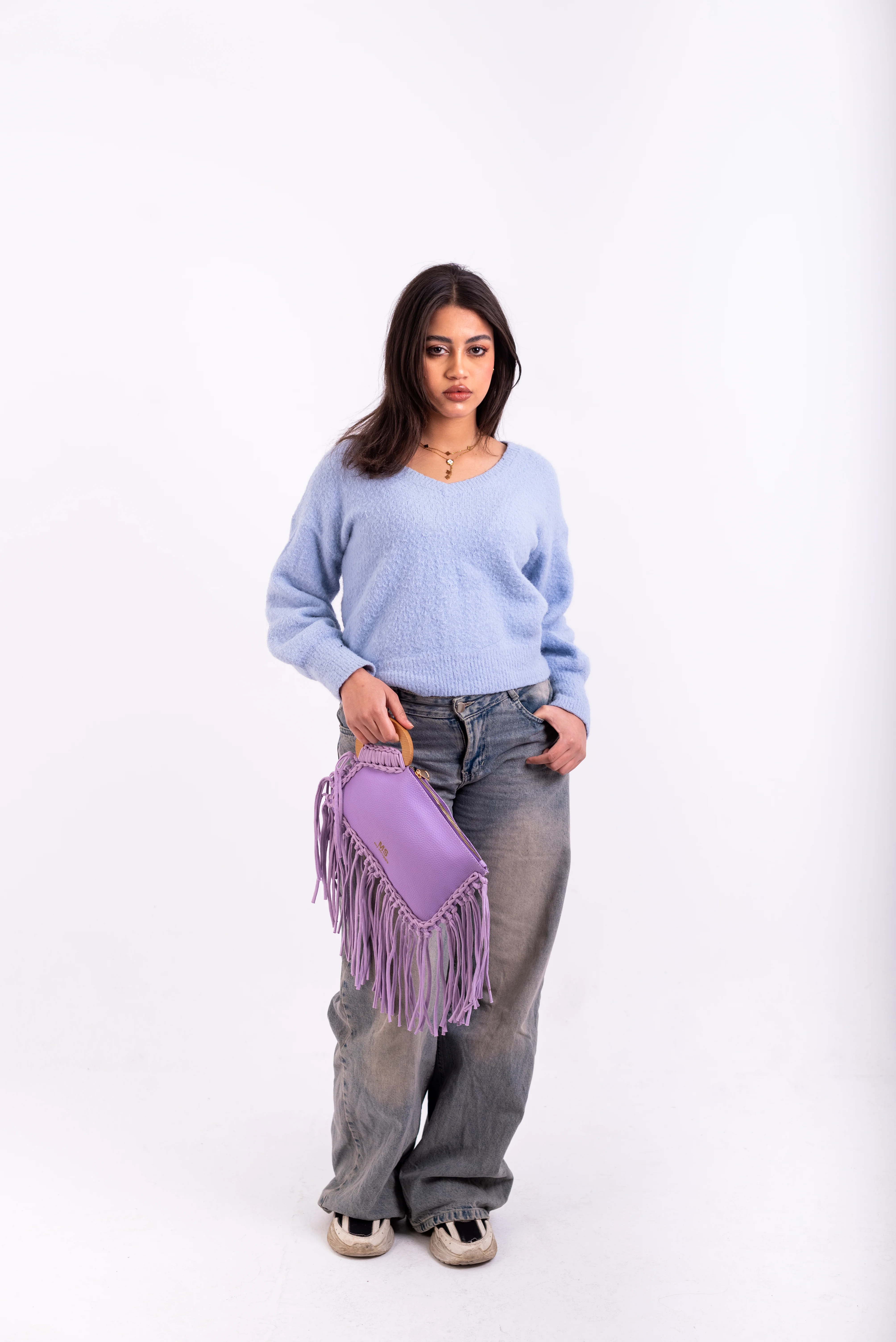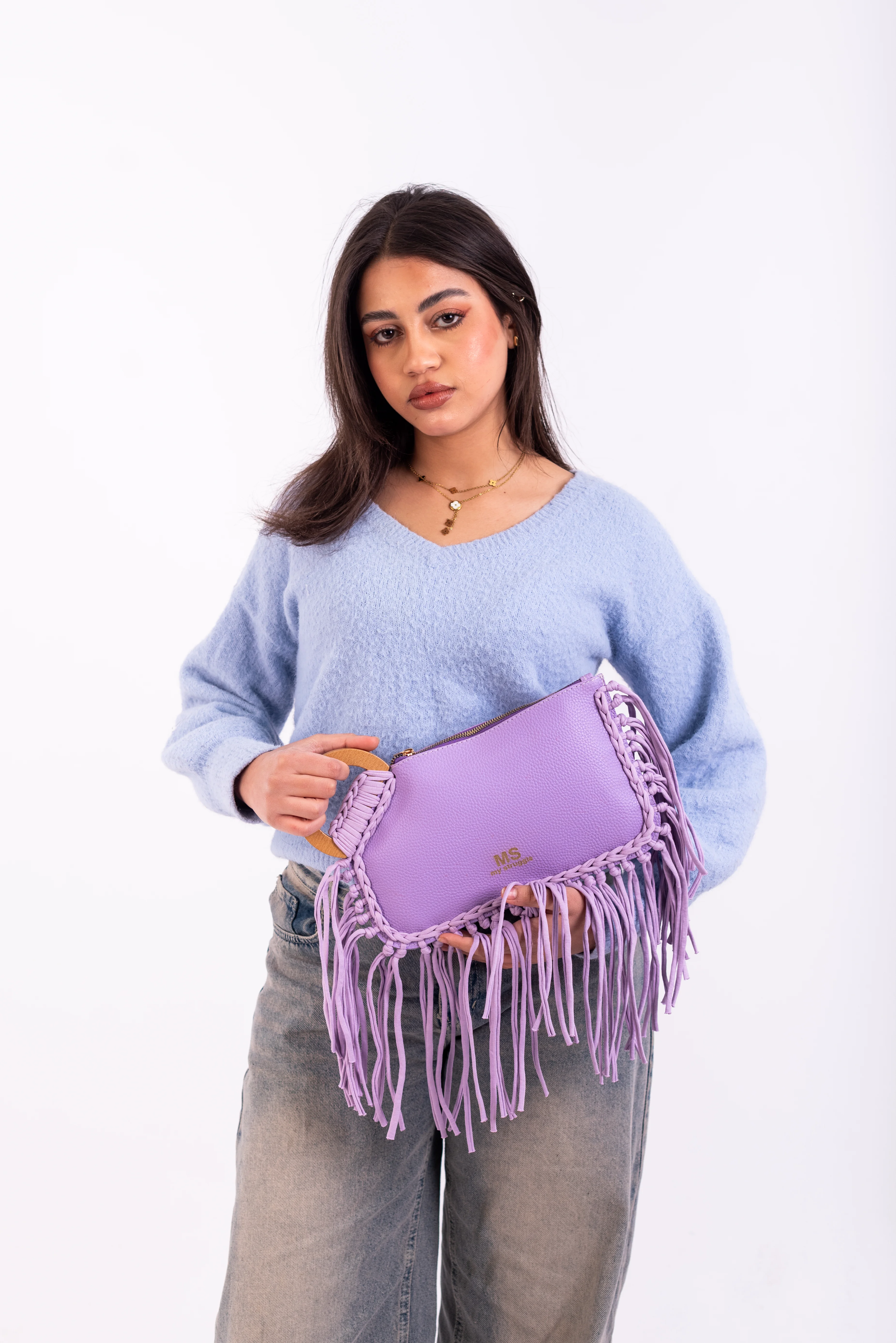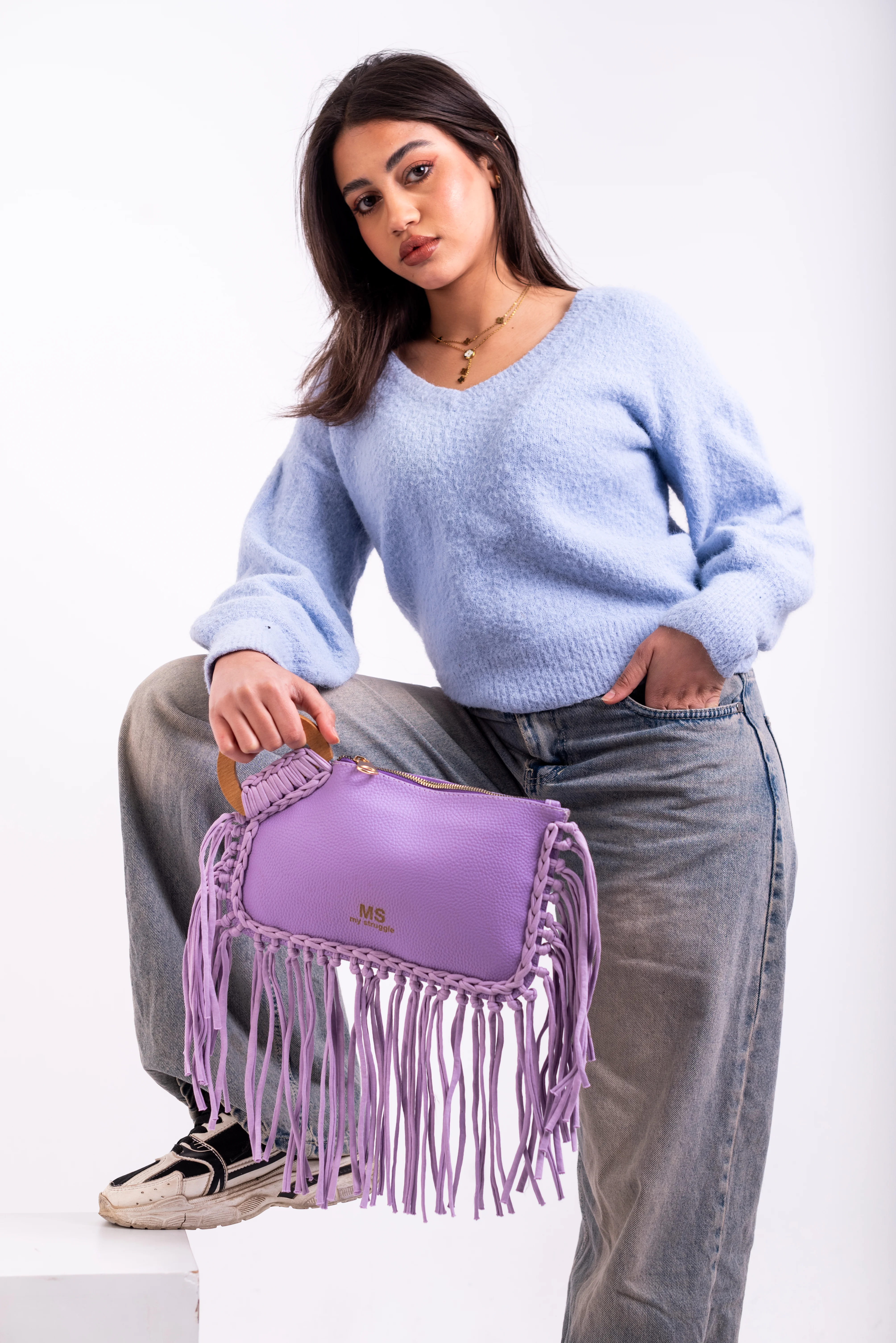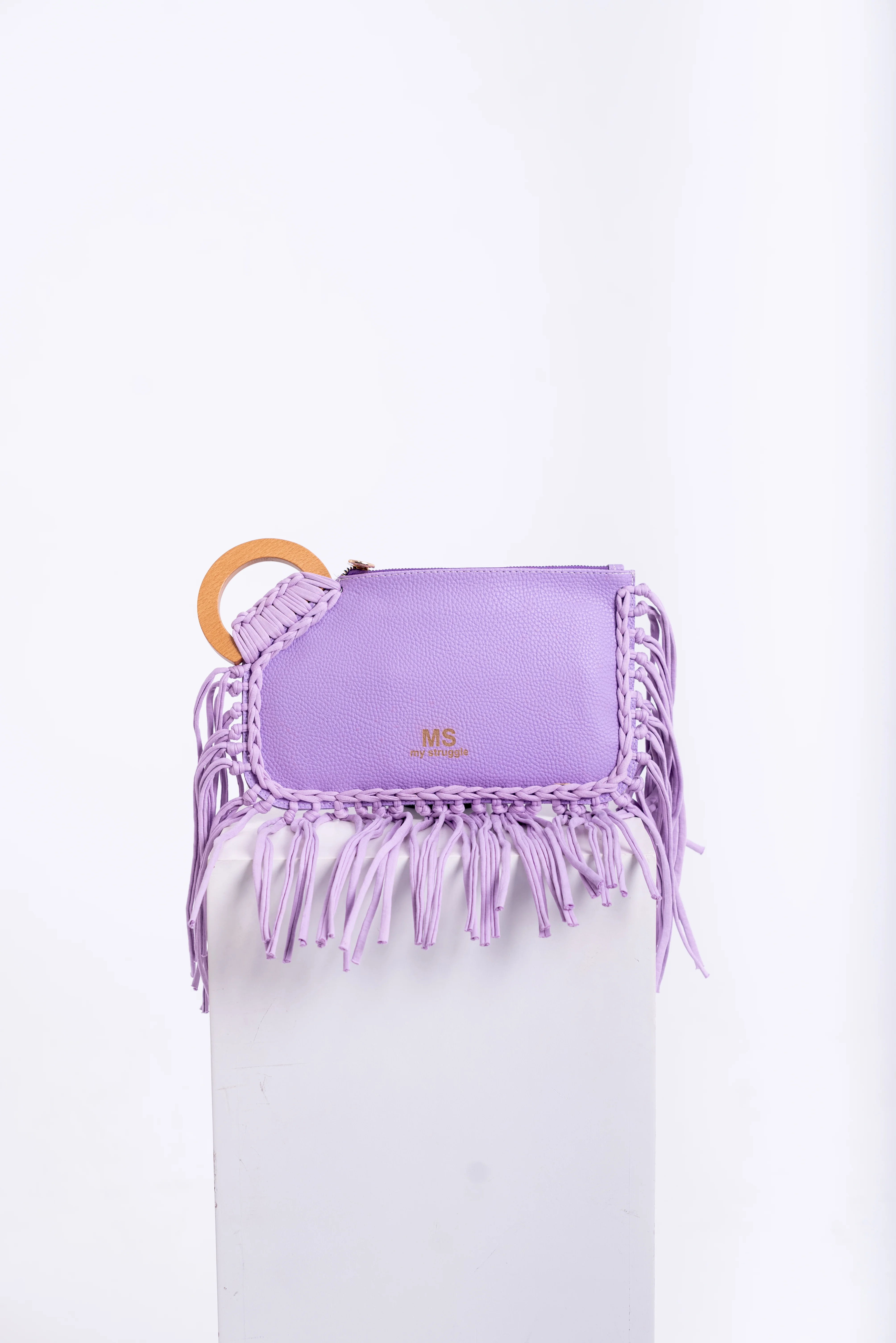 My Struggle Lavender Leather Fringe Clutch.