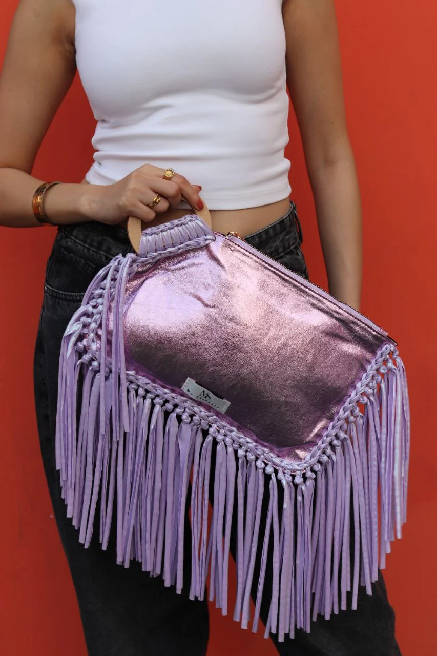 Sparkle & Charm with The Lilac Shimmer Premium Metallic Fringe Clutch by My Struggle.