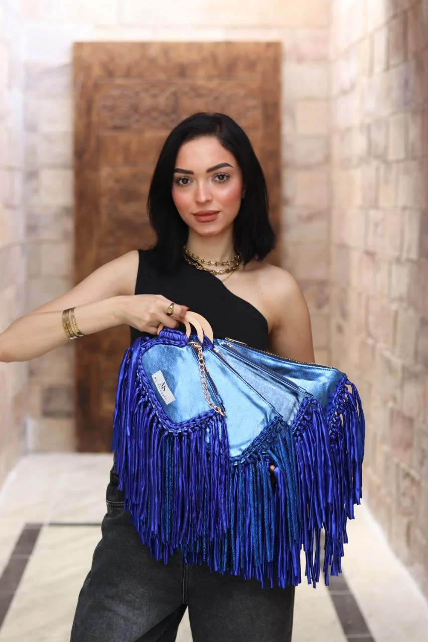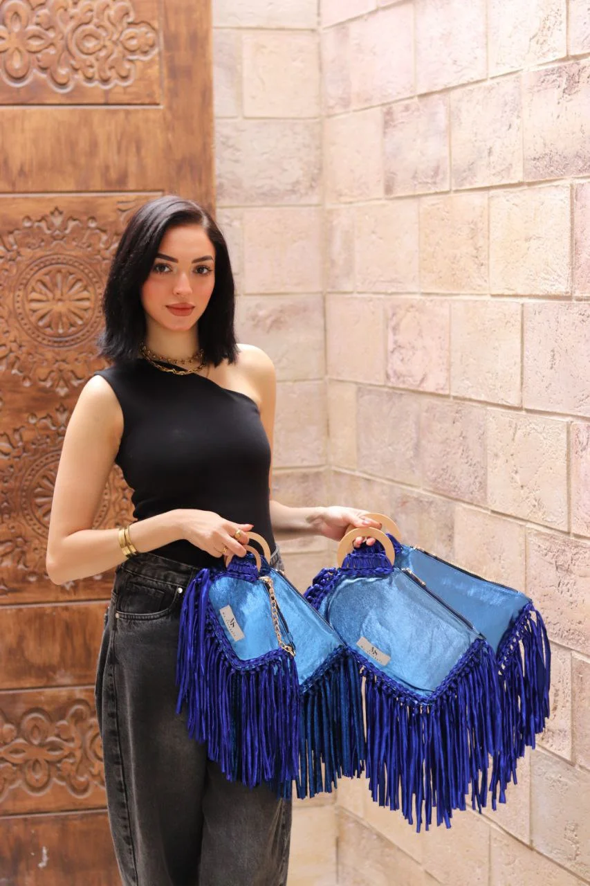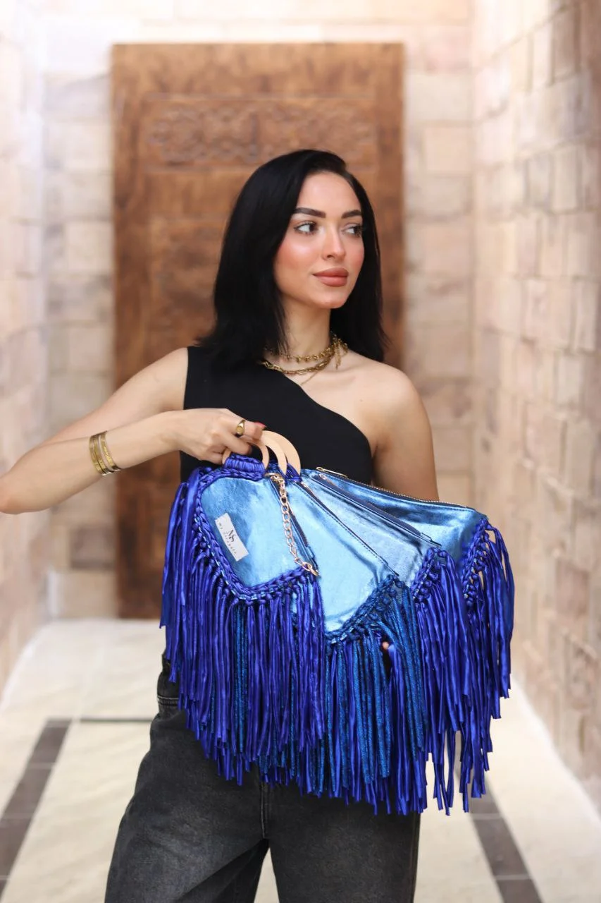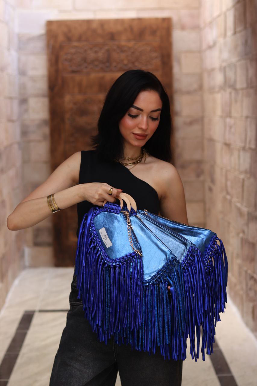 Luxurious Fringe Detailing: Adorned with a lavish cascade of matching metallic royal blue fringe, it creates dynamic movement and adds a touch of edgy glamour.