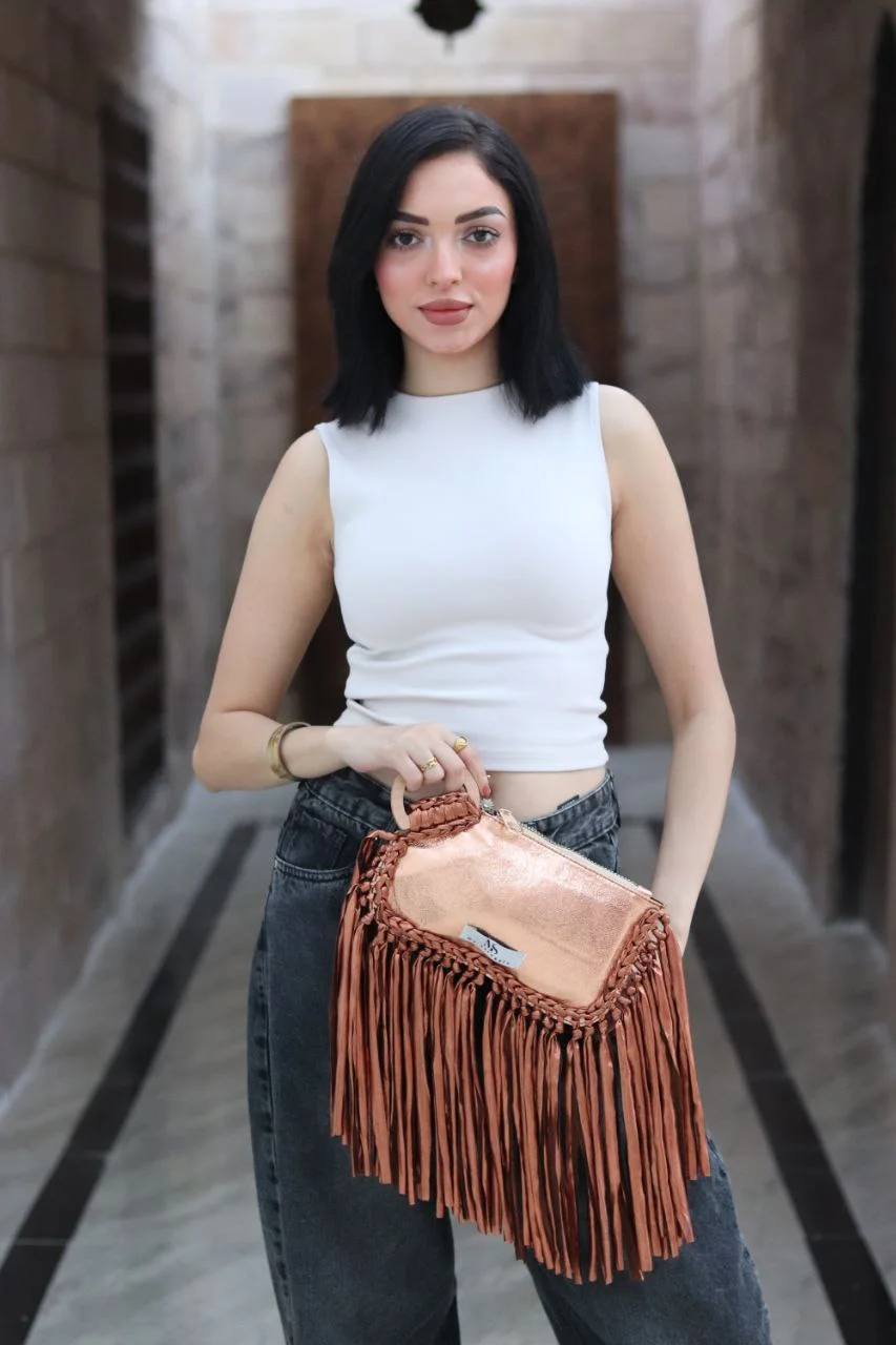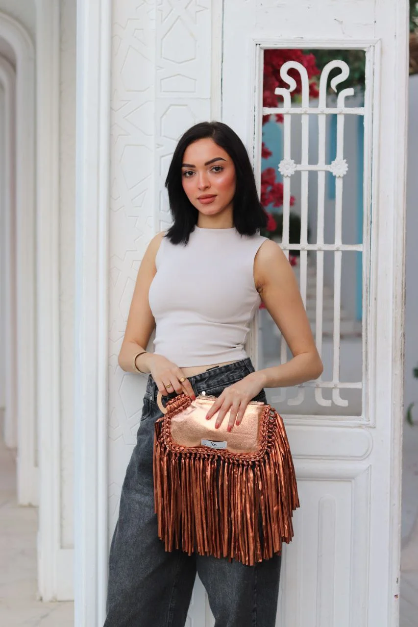 Dynamic Fringe Detailing: Adorned with a lavish cascade of lustrous golden fringe, it creates captivating movement and adds an irresistible touch of bohemian glam.